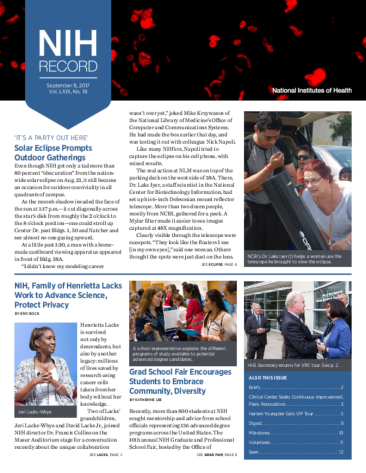 The NIH Record, founded in 1949, is the biweekly newsletter for employees of the National Institutes of Health.