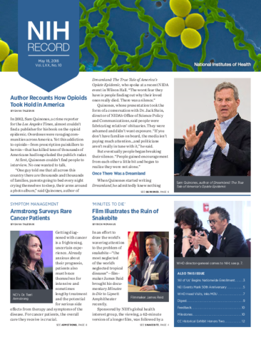 “One guy told me that all across this country there are thousands and thousands of families, parents going to bed every night crying themselves to sleep, their arms around a photo album,” said Quinones, author of Dreamland: The True Tale of America’s Opiate Epidemic, who spoke at a recent NIDA event in Wilson Hall. “The worst fear they have is people finding out why their loved ones really died. There was a silence.”
