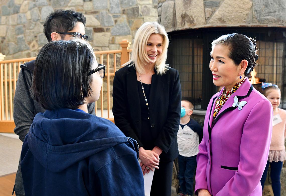 Hogan, wife of Maryland Gov. Larry Hogan, talks to patient Noah, 22, her mom, Gisela and Lucca to learn more about Noah’s treatment for two ultrarare diseases.