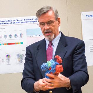 At the largest zebrafish facility in the country, Kevin Bishop, NHGRI Zebrafish Core staff member, holds up a tank of zebrafish to observe their behavior and physiology. Using molecular techniques, researchers alter the zebrafish’s genome to mimic what is seen in human patients in the clinic.