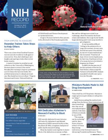 The NIH Record, founded in 1949, is the biweekly newsletter for employees of the National Institutes of Health.