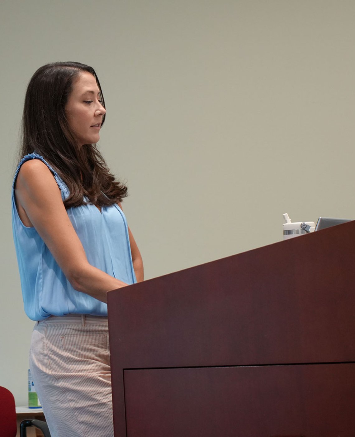 Students listened to guest lectures in the morning and toured an animal facility after lunch. The list of presenters included Angela Szwec, OACU program analyst; Tiffany Chen, a science writer at NIDCR; Dr. Brenda Klaunberg, animal imaging program director at the National Institute of Neurological Disorders and Stroke (NINDS); NIDCR biologist Lynn Vitale-Cross; Dr. Lauren Davidson, director of the NIDCR veterinary resources core; and NIDCR facility manager David Mallon.