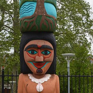 The healing totem pole has graced the grounds of NIH's National Library of Medicine since 2011. Due to advanced natural decay, the totem and carved benches will soon be laid to rest.